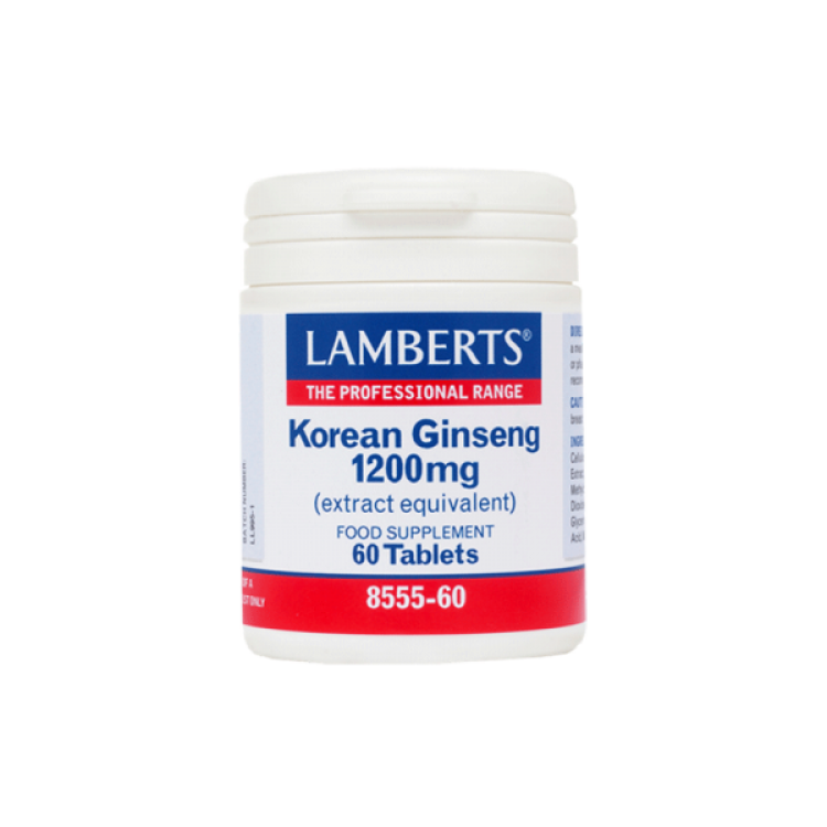 Τα κύρια ενεργά συστατικά του Korean Ginseng τα βρίσκουμε στη ρίζα και περιλαμβάνουν πάνω από 20 χημικές ουσίες που υπάγονται στην κατηγορία των ginsenosides. To Korean Ginseng της Lamberts περιέχει 1200mg από ρίζα Korean Ginseng σε μορφή συμπυκνωμένου εκχυλίσματος των 80mg, ώστε να παρέχει ένα εγγυημένο ποσό 24mg ginsenosides.